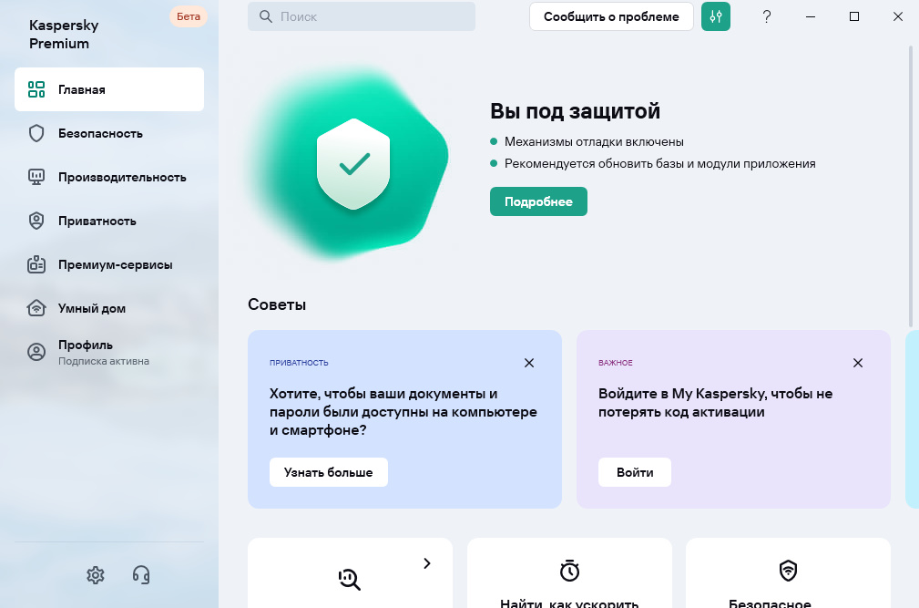 Kaspersky не предлагает включить модуль Анти-Баннер в главном окне непосредственно после установки продукта